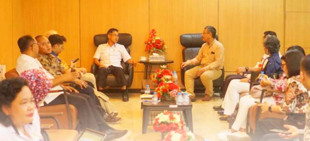 Wakil Walikota Bitung Hengky Honandar SE di dampingi Asisten Administrasi Umum Drs. K.W. Benny Lontoh MA dan Kepala Bappeda Drs.Sifri Mandak MSi MAP menerima kunjungan Tim Ditjen Bina Pembangunan Daerah (Bina Bangda) Kementerian Dalam Negeri (kemendagri) bersama