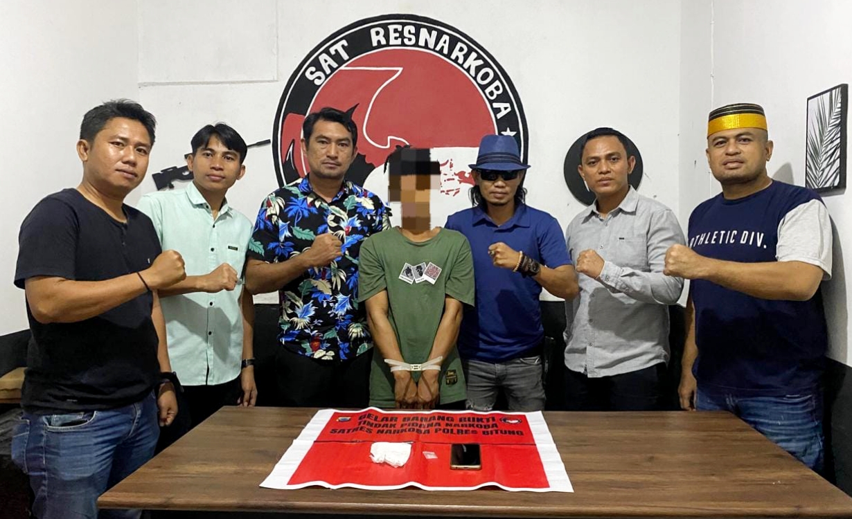 Terduga Pelaku seketika tak berkutik, saat Kasat Resnarkoba, Iptu Trivo Datukramat, didampingi KBO Satresnarkoba Ipda Abdul Mahalieng beserta Tim, telah melingkar mengelilinginya, dalam gelar Operasi Tangkap Tangan (OTT) siang itu.