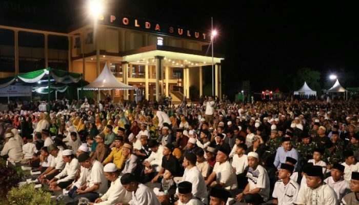 Acara yang berlangsung di halaman Presisi Mapolda Sulut, pada Jumat malam (8/3) diawali dengan Salat Isya berjamaah ini.
