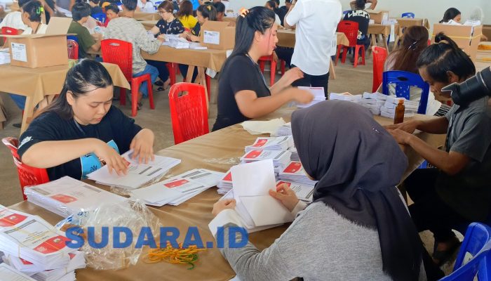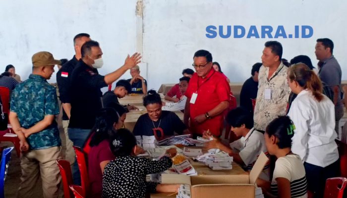 Bitung, Sudara.id – KPU Kota Bitung mengundang Forkopimda Kota Bitung beserta Partai Politik peserta Pemilu 2024 beserta para Jurnalis Kota Bitung untuk hadir dan menyaksikan secara langsung proses penyortiran dan pelipatan kertas surat suara pemilu 2024 di Gudang logistik KPU Kota Bitung, Jalan Horizon Kelurahan Madidir Ure Kecamatan Madidir Kota Bitung, Jumat (5/1/2024).