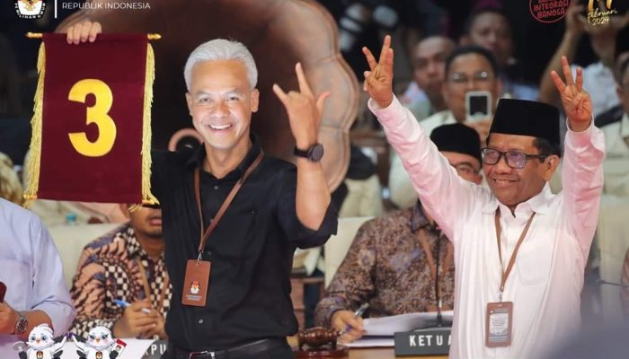 Dan, 3 (Tiga) adalah nomor kepesertaan pasangan Ganjar Pranowo dan Moh. Mahfud MD.