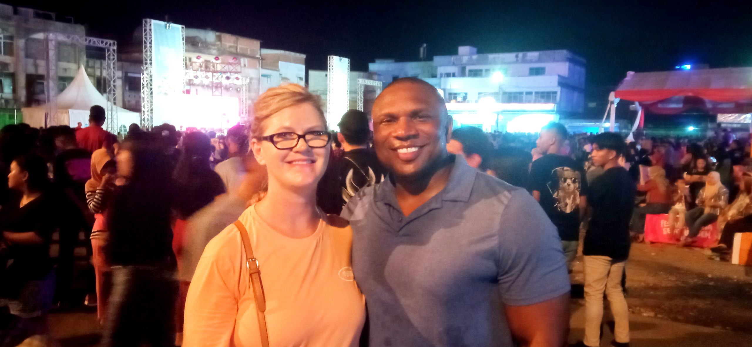 Ternyata, begitu tiba di Arena FPSL, Lawrence dan Becky langsung berburu kuliner khas Bitung.