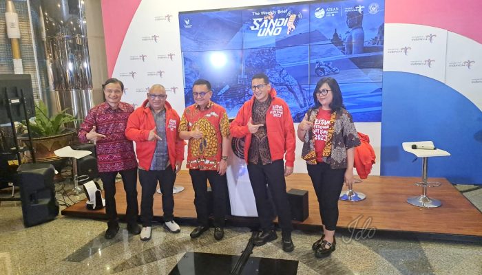 Jakarta, Sudara.id – Walikota Bitung Ir Maurits Mantiri MM promosikan potensi wisata dan ekonomi kreatif pada even Festival Pesona Selat Lembeh (FPSL) 2023 dalam dialog interaktif pada acara live “The Weekly Brief (WBSU) with Sandi Uno” bersama Menparekaf Sandiaga Uno di Sapta Pesona Building, Kemenparekaf, Senin (2/10/2023) malam.