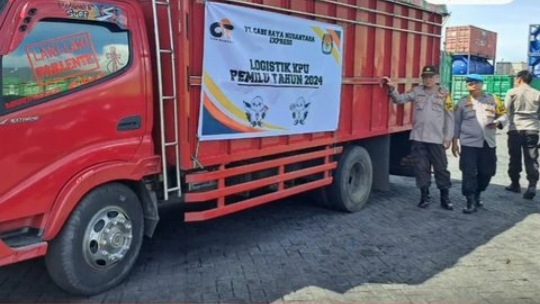“Mulai dari kedatangan kontainer berisi logistik surat suara, pembongkaran, pengangkutan logistik hingga pengawalan pendistribusian logistik ke KPU kabupaten/kota, mendapat pengawalan ketat aparat Kepolisian,” ujarnya.