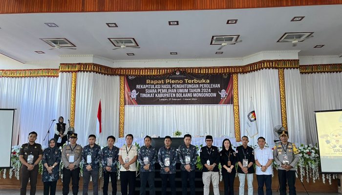 Lolak, sudara.id – Polres Bolaang Mongondow (Bolmong) turun tangan dalam mengamankan tahapan Pemilu 2024 dengan menurunkan 95 personel untuk mengawal Rapat Pleno Rekapitulasi Hasil Perhitungan Perolehan Suara oleh Komisi Pemilihan Umum Daerah (KPUD) Bolmong. Rapat tersebut berlangsung dari tanggal 27 hingga 29 Pebruari 2024.