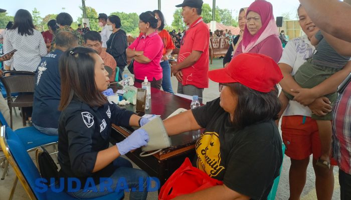 Antusias masyarakat terpantau saat mengantri di posko kesehatan untuk mendapatkan pelayanan kesehatan gratis.