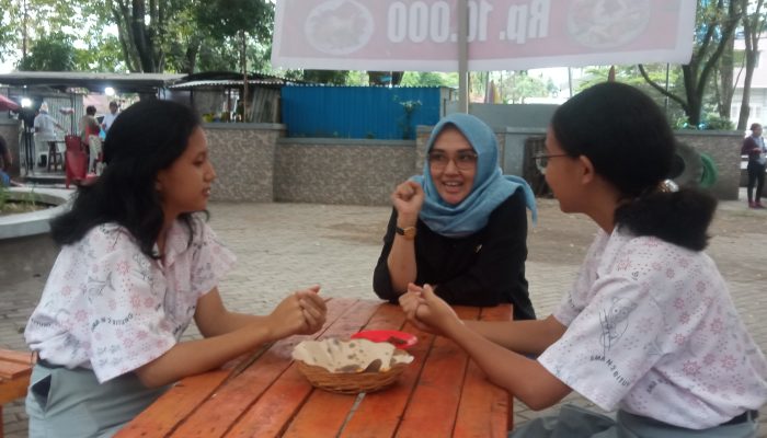 Wiwinda Hamisi juga pada saat itu berkesempatan berdiskusi tentang Pemilu dengan 2 orang siswi yang kebetulan sedang berada di Taman Kota.