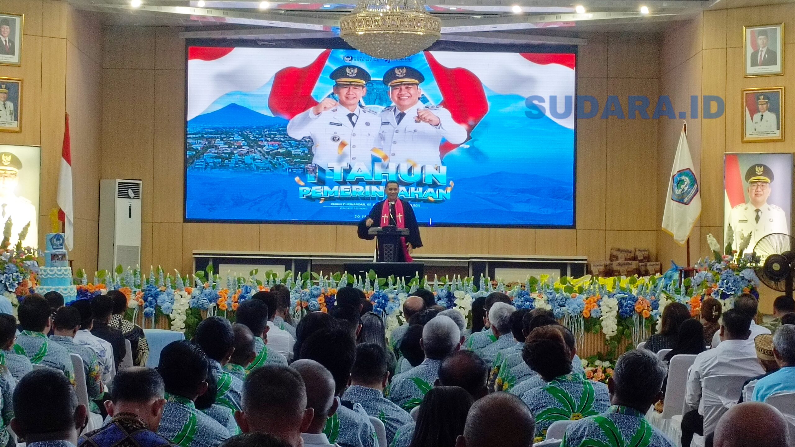 Bitung, SUDARA.ID – Refleksi satu tahun kepemimpinan Walikota Hengky Honandar SE dan Wakil Walikota Randito Maringka S.Sos (HH-RM) di Kota Bitung digelar secara sederhana dengan mengedepankan nilai spiritualitas dan kepedulian sosial, melalui pelaksanaan kegiatan ibadah syukur dan doa bersama, yang dirangkai dengan penyaluran zakat serta diakonia bagi warga kurang mampu, yang diselenggarakan di Ruang SH Sarundajang, Kantor Walikota Bitung, Jumat, (20/2/2026).