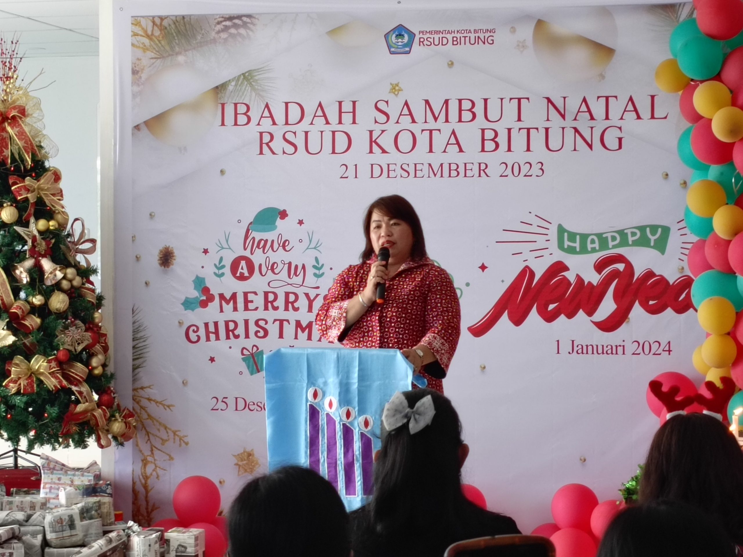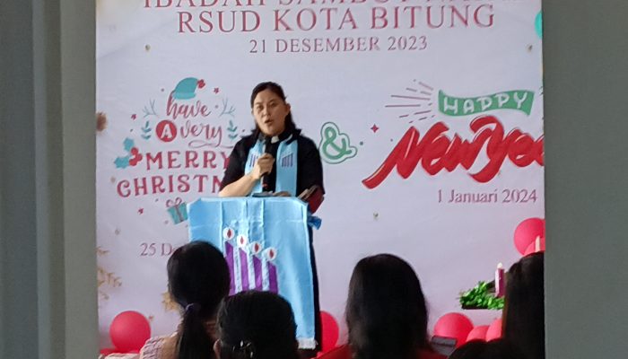 Bitung, Sudara.id – Keluarga Besar RSUD Kota Bitung dibawah pimpinan Direktur, dr Vivi A Tumbel melaksanakan Ibadah Sambut Natal 2023 yang digelar di Lobi RSUD Kota Bitung, Kamis (21/12/2023)