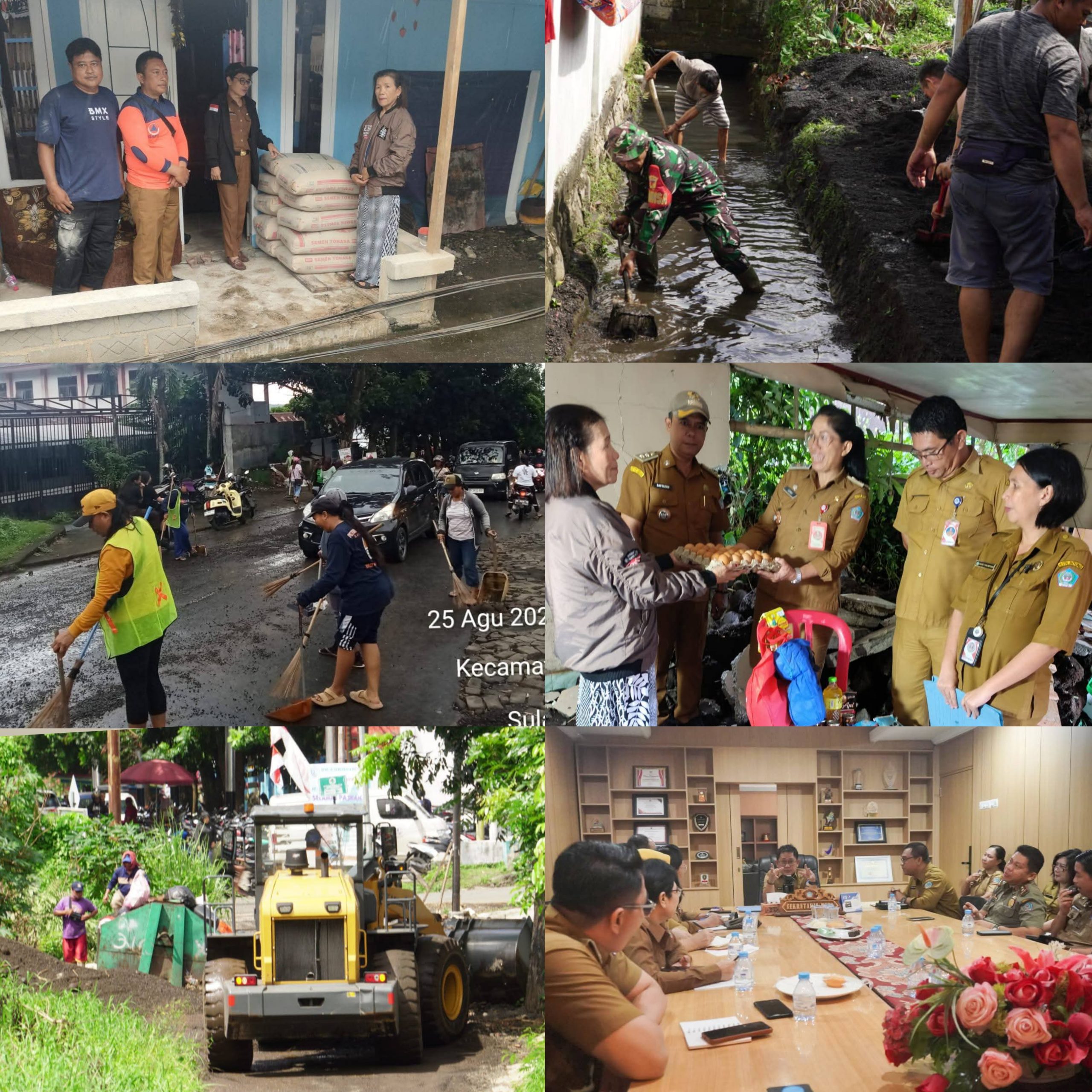 Sementara itu di sisi lain, Dinas Sosial (Dinsos) Pemkot Bitung, bergerak cepat memberikan bantuan kepada warga yang terdampak bencana, termasuk beberapa keluarga yang rumahnya terdampak longsor, berupa kebutuhan dasar dan paket sandang, yang diserahkan langsung oleh Kepala Dinas Sosial, Leddy Ambat, bersama jajarannya di sejumlah lokasi terdampak.