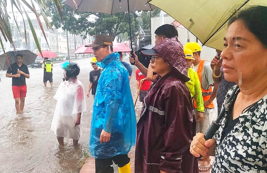 Dibawah guyuran hujan, Walikota menyampaikan, “Saya minta semua pihak bergerak cepat. Pastikan tidak ada warga yang terjebak atau mengalami kerugian besar. Drainase yang tersumbat harus segera dibersihkan,” ujar Walikota saat berada di salah satu titik banjir di Kelurahan Manembo-nembo.