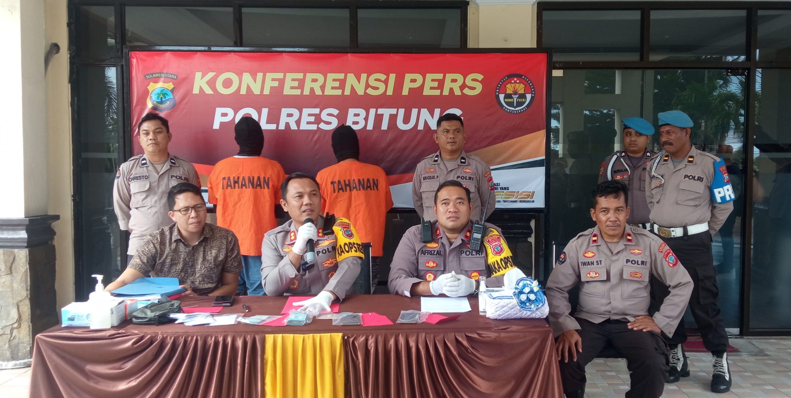 Kapolres Bitung, AKBP Tommy Bambang Souissa SIK dalam Konferensi Pers tersebut menyampaikan bahwa dari hasil penyidikan perkara, telah ditetapkan 2 tersangka yaitu S alias Mas N (45) dan AP (40) yang keduanya adalah pegawai (PNS) di Kantor Pelabuhan Perikanan Samudera Bitung.